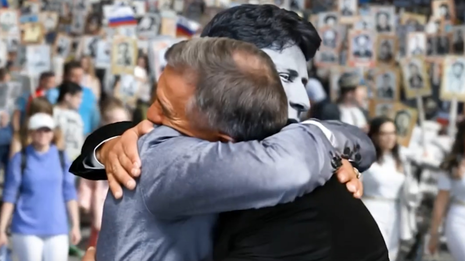 Создай видео, где ты и участник ВОВ из твоей семьи обнимаются